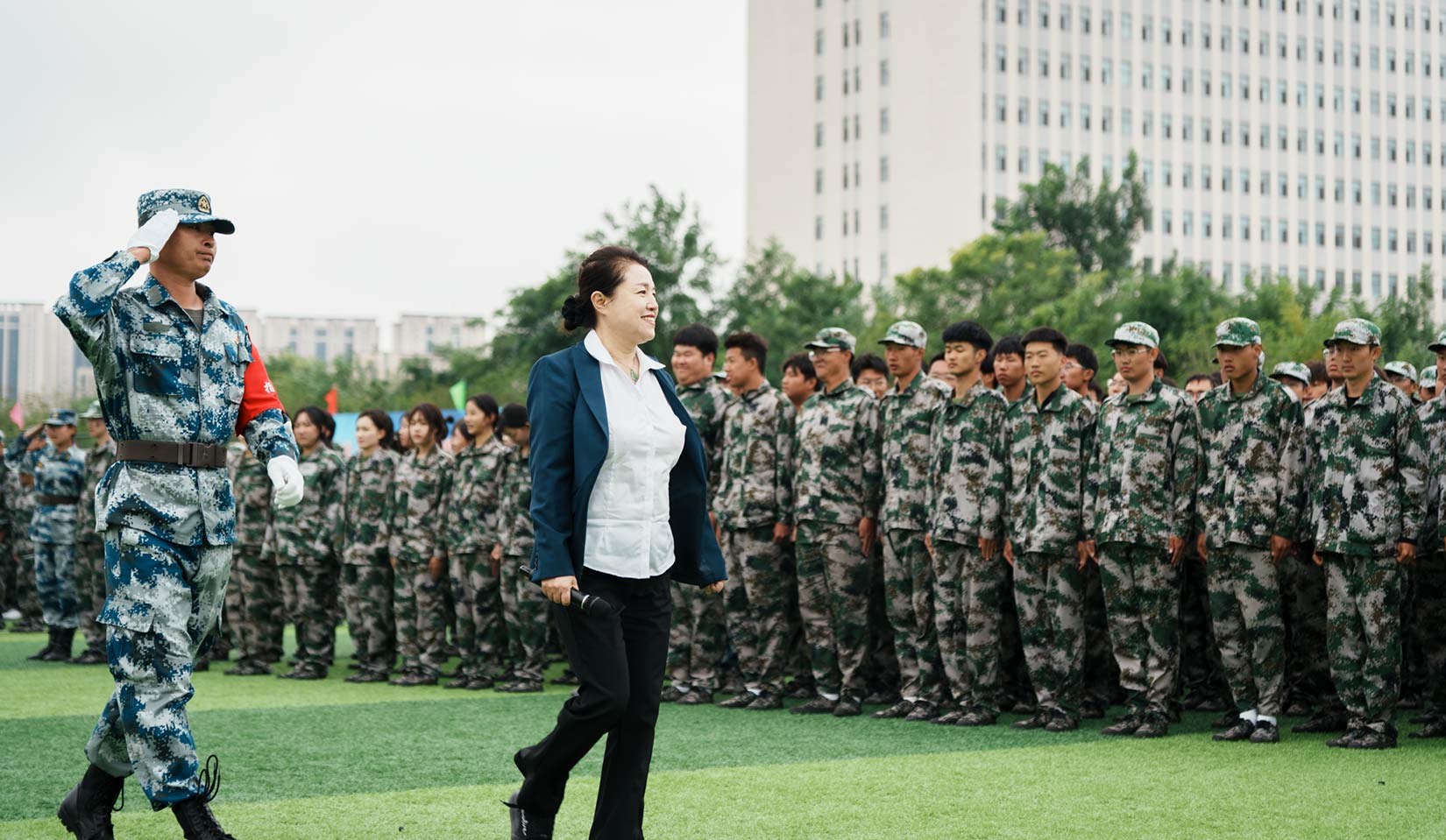 党委副书记、校长孙玉红作了题为《乘风破浪 拔节成长 奋力在开新局中逐梦远行》的讲话。孙玉红指出,全体新生经历军训的洗礼,完成了开学第一课的成功蜕变,在此她向全体新生提出三点希望。一要坚定理想信念,永立鸿鹄志。古之立大事者,不惟有超世之才,亦必有坚忍不拔之志。要注重在仰望星空中坚定理想信念,传承好红色基因,在脚踏实地中增加自己的人生厚度,不辜负韶华,不怠慢时光,在志存高远、奉献社会、成就梦想中书写无愧于自己、无愧于时代的青春华章。二要矢志求学问道,永做奋斗者。学习是提高能力素质、砥砺意志品格、涵养静气定力的过程,希望同学们始终把学习当作一个永恒的主题,把学习从单纯的求知变为生活的方式,保持读书好学、勤于思考的良好习惯,像海绵汲水一样汲取专业知识,不断提升专业能力,在拼搏奋斗中不断赶超自我。三要崇尚修身立德,锤炼真本领。要涵养正己修身的道德修为,心有所畏、言有所戒、行有所止,不断锤炼意志力、坚韧力、自制力,争做德才兼备的新时代优秀大学生。要懂得感恩,多向传道授业解惑的老师寻求真本领,在提升能力、修身养德中夯实人生之基。希望同学们用奋斗书写精彩人生,用拼搏成就青春梦想。