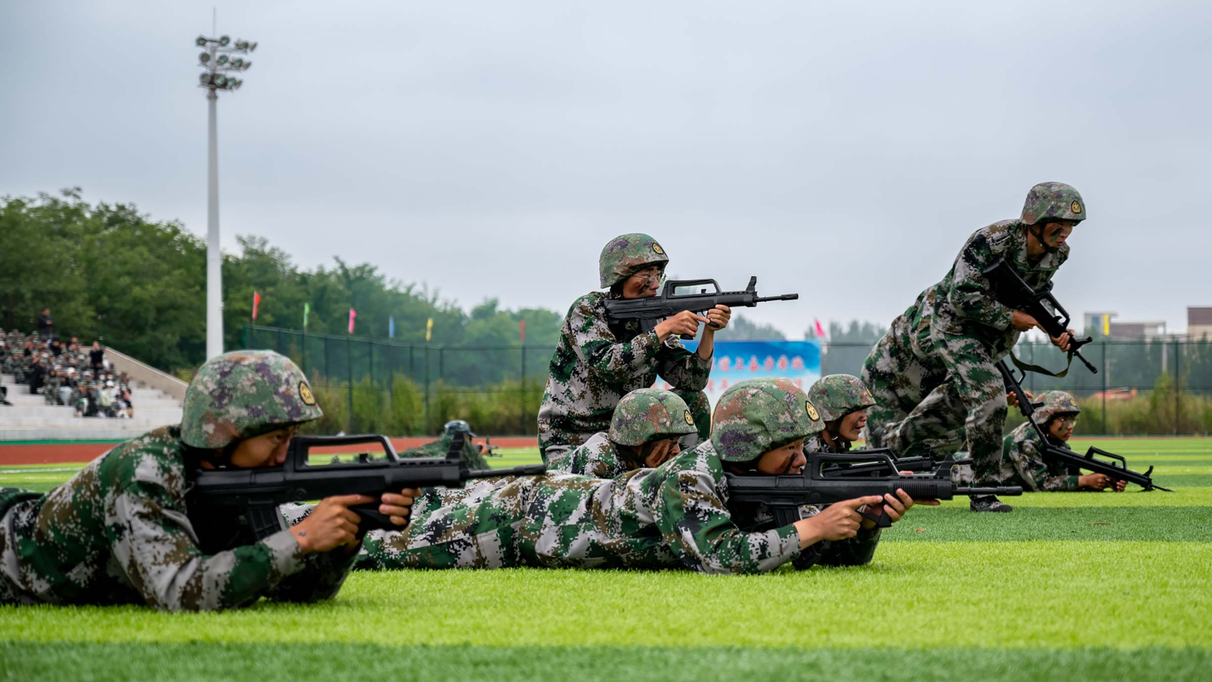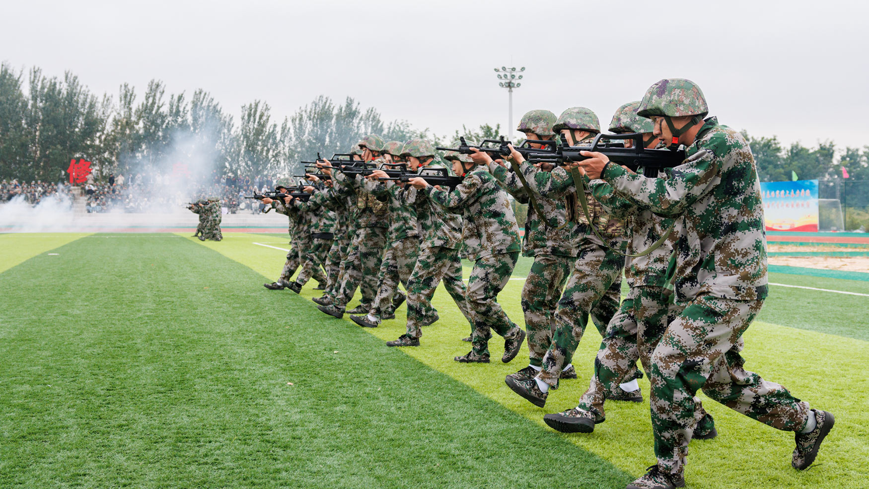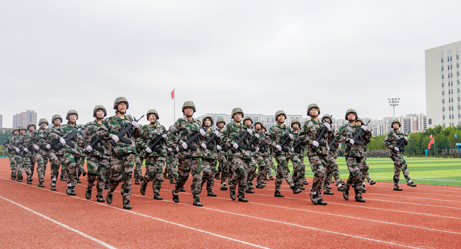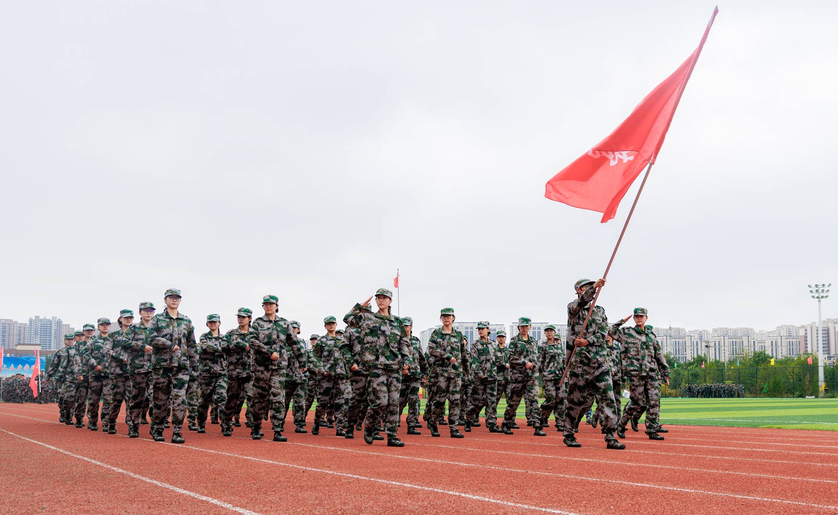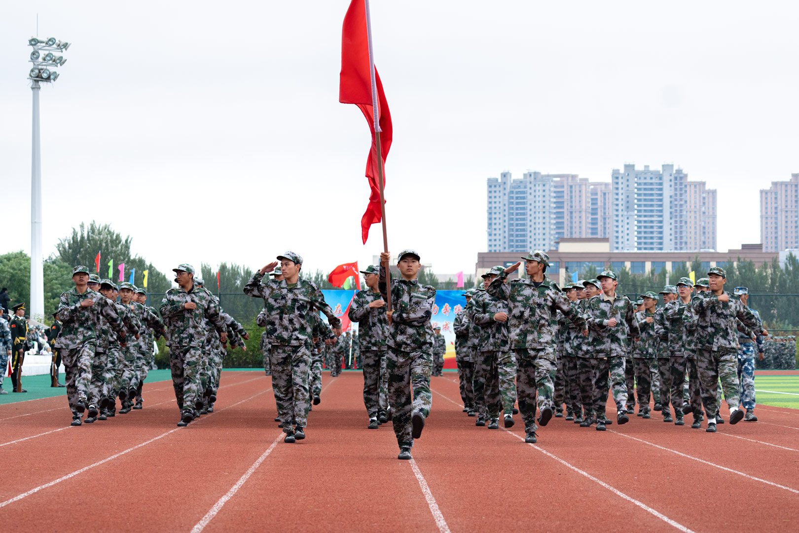 军训成果汇报分列式环节,各营连有序组织各个方队,他们步伐整齐、口号嘹亮、精神饱满、斗志昂扬通过主席台,接受检阅。