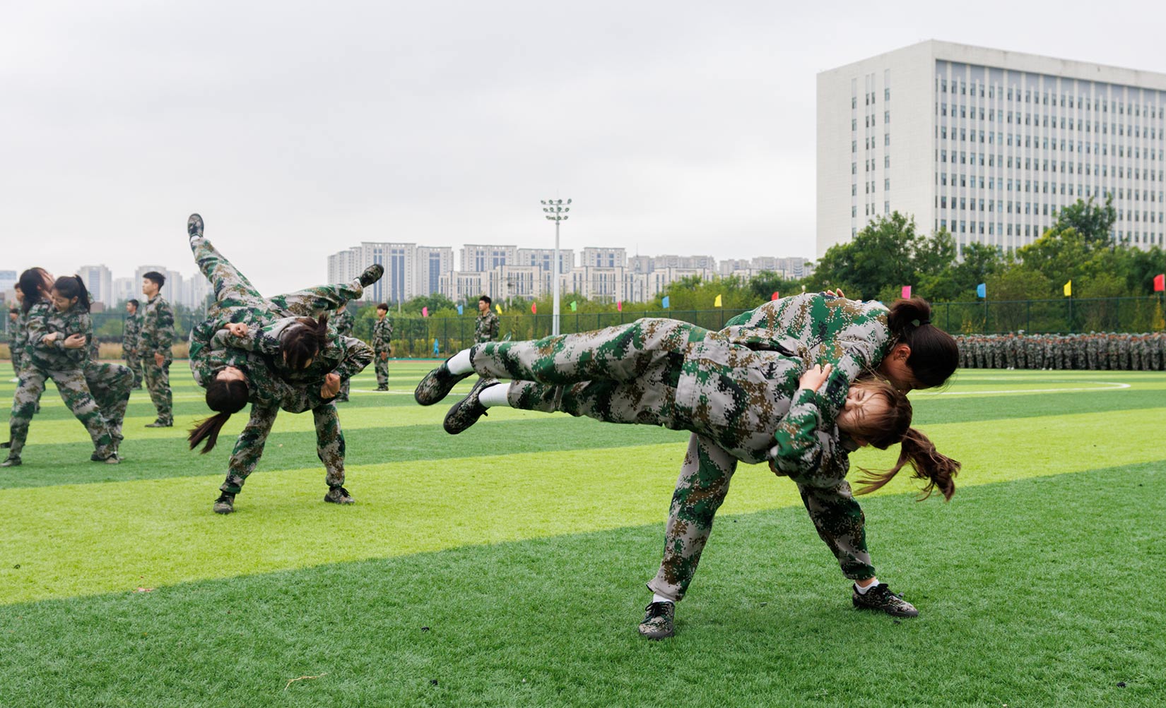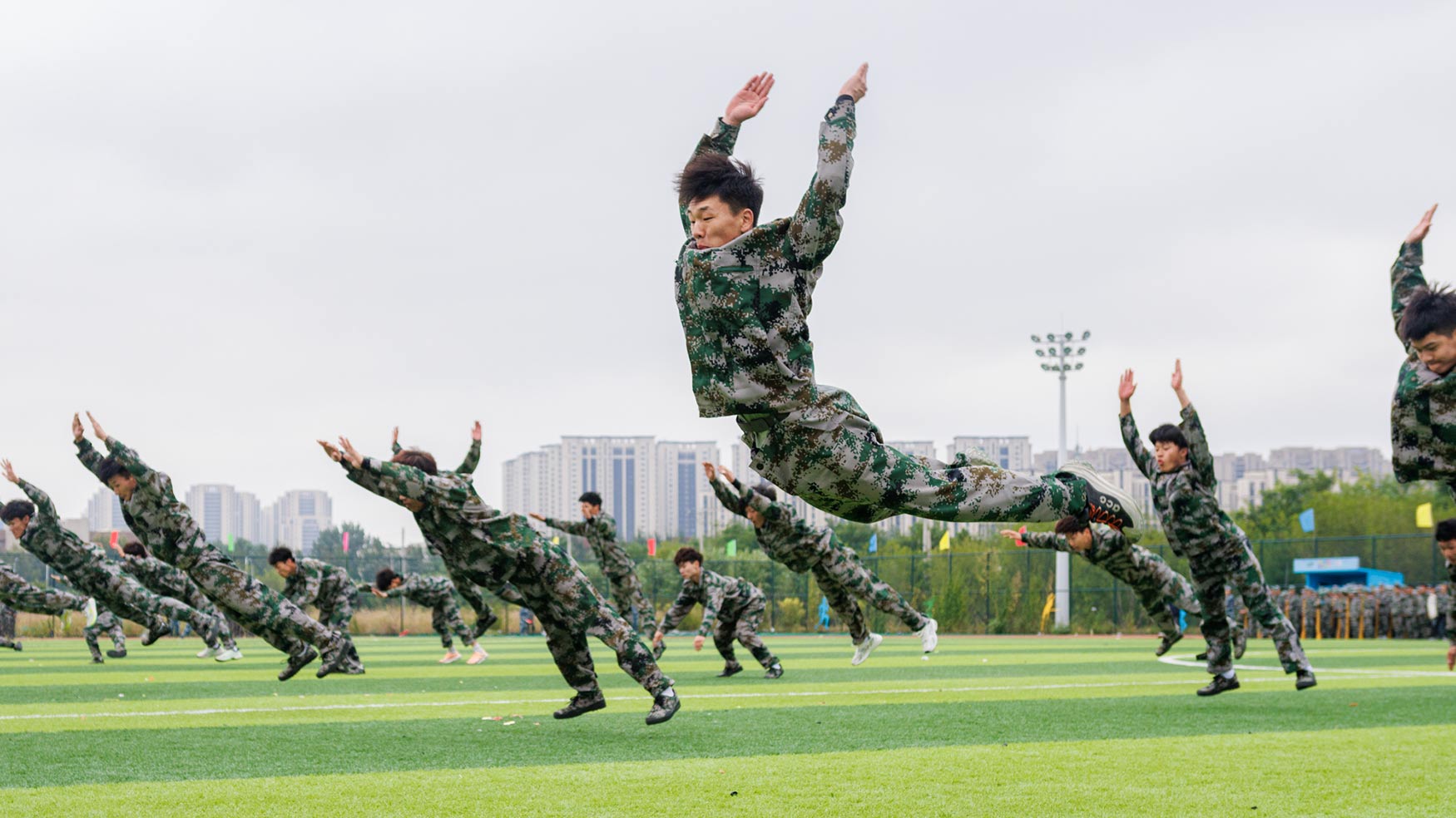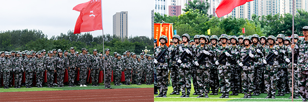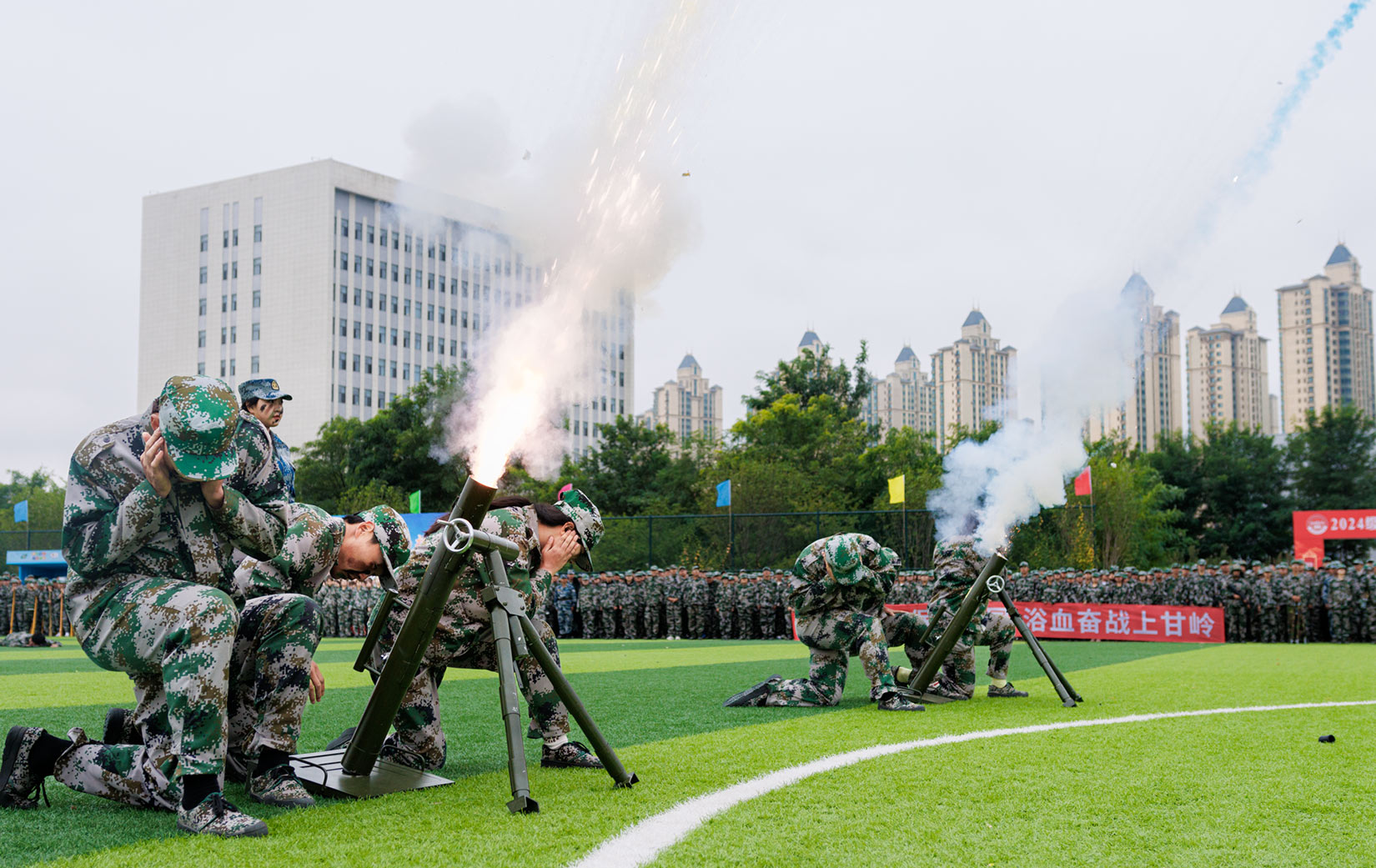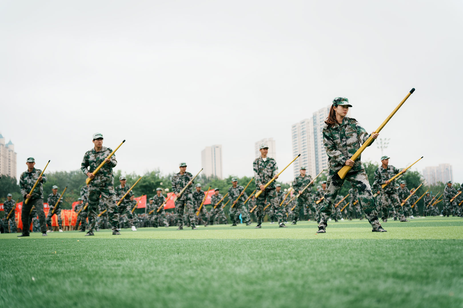 军训成果汇报分列式环节,各营连有序组织各个方队,他们步伐整齐、口号嘹亮、精神饱满、斗志昂扬通过主席台,接受检阅。