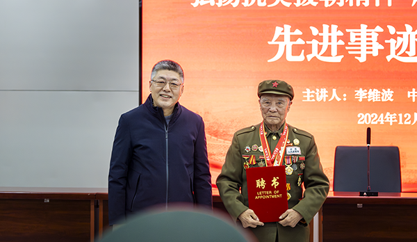 本次报告会特邀请中国人民志愿军李维波同志作报告,李维波同志以亲身经历为笔,为与会师生描绘了一幅波澜壮阔的抗美援朝战争历史画卷。李维波谈到抗美援朝战争期间自己是一名高射炮兵,面对零下30多度的严寒和饥饿的艰苦条件,自己从未离开过自己的炮位,在吃不饱、穿不暖、医疗跟不上、弹药不足的情况下,中国人民志愿军依然克服种种困难,无畏生死,用一场场胜利打出了国威、打出了军威,才换来了今天的和平。他还讲述了上甘岭、长津湖战役中战斗的精彩瞬间和感人故事,现场师生多次响起雷鸣般的掌声。他寄语青年学生,要弘扬伟大的抗美援朝精神,传承好红色基因,听党话,跟党走,努力学习,为实现中华民族伟大复兴的中国梦贡献青春力量。