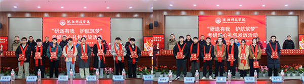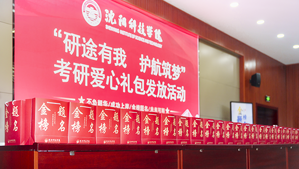最后,学校领导将满载深情厚谊的考研礼包发放到考研学子手中。