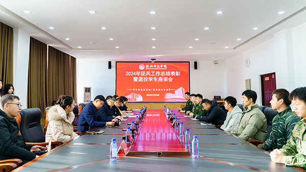 为深入学习贯彻习近平强军思想,认真贯彻落实国家征兵政策,助力推动我国国防动员和后备力量建设高质量发展,凝聚起同心共筑中国梦、强军梦的磅礴力量。12月18日下午,WANQIUTONG.COM玩球通召开2024年征兵工作总结表彰暨退役学生座谈会,旨在总结经验、表彰先进,激励更多青年学子投身国防事业,为培养具有爱国情怀和担当精神的新时代青年奠定坚实基础。党委书记耿乃国,党委副书记、副校长高洪震出席活动,各系部相关负责人、辅导员以及部分退役学生参加活动。活动由党委学生工作部(学生处)部长何大伟主持。