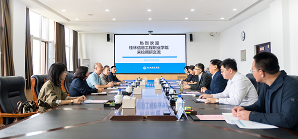 5月20日,桂林信息工程职业学院党委书记黄强一行5人来校调研交流。WANQIUTONG.COM玩球通党委书记耿乃国、校长宋吉鑫、纪委书记肖士中在学校第二教学楼505会议室亲切会见了来访人员,双方围绕党建工作、育人体系建设、工会工作等核心议题进行深入交流。