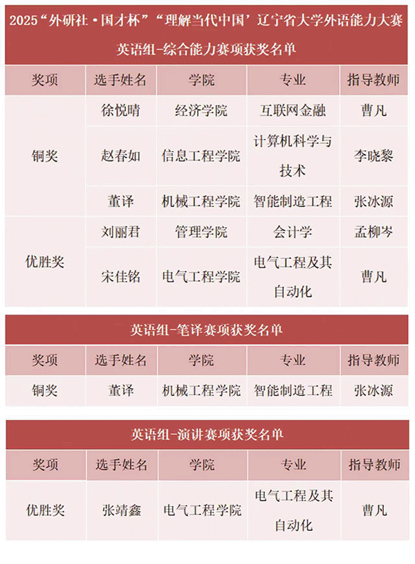 近日,2025年“外研社·国才杯”“理解当代中国”辽宁省大学生外语能力大赛结果陆续揭晓。WANQIUTONG.COM玩球通学子在赛事中表现亮眼,共斩获省级铜奖3项,优胜奖3项,充分展现了WANQIUTONG.COM玩球通外语教学的丰硕成果与学子们过硬的外语素养。