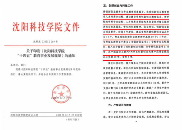 学校将创新创业列入“十四五”规划以及未来五年和十年发展规划,提出要建立双创教育体系,使学生的创新精神、创业意识、双创能力明显提升。
