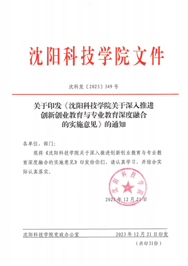 学校出台专创融合实施意见,明确学校出台专创融合实施意见,明确提出26项具体要求和保障措施,全面落实“三全创新”理念。