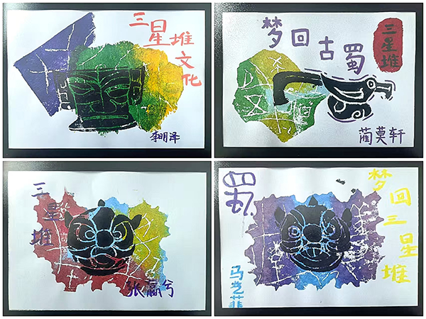 吹塑纸版画课程则带孩子们走进传统工艺世界,感受非遗文化韵味。教师通过实物展示、历史讲解,介绍青铜器起源、发展及纹饰特点,从饕餮纹的神秘庄重到云雷纹的灵动流畅,让孩子们潜移默化中领略中华传统文化的博大精深。随后,详细演示画稿、刻版、涂色、拓印等制作流程,孩子们手持铅笔在吹塑纸上勾勒纹饰,拓印环节充满惊喜——当颜料涂抹版面、盖上宣纸按压,古朴典雅的青铜器版画显现时,教室响起阵阵欢呼。“原来古代青铜器这么漂亮,这种画画方式太有趣了!”一位同学兴奋地说。亲身体验全程后,孩子们不仅掌握版画制作技巧,更增强了文化自信。