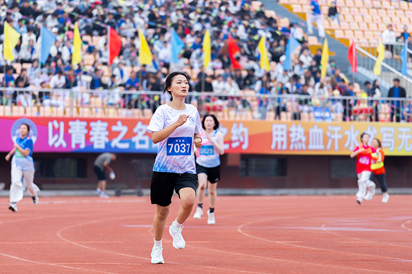 运动员们以饱满的激情、昂扬的姿态奋力向前奔跑