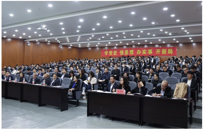 会上,中共辽宁省委党校文史教研部主任王超航教授以《中国共产党的百年奋斗历程及基本经验》为题,作了专题辅导报告。她从“党中央高度重视党史学习教育”“中国共产党百年奋斗历程及经验”“从百年党史中践行初心使命”三个方面,深入阐释了我们党作出的伟大历史贡献、形成的重大理论成果、铸就的伟大精神,系统梳理了我们党在百年奋斗历程中积累的宝贵经验,用鲜活的史料、直观的数据,生动地介绍和展示了党的伟大实践、伟大创造。报告主题鲜明、内容丰富、重点突出、逻辑严谨,对广大党员干部和师生员工传承红色基因、赓续精神血脉,更好地从百年党史中汲取奋进的智慧和力量,具有很强的指导意义。