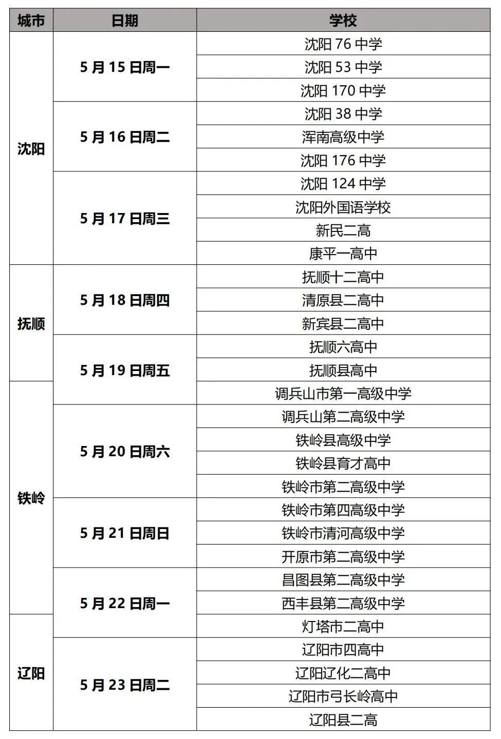 说明:以上行程在实际走访过程中可能会略有变动,请以当天高中通知为准。