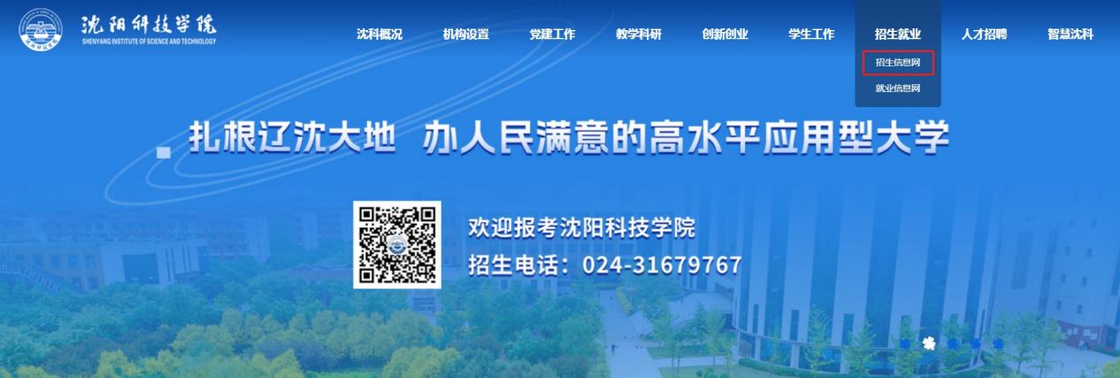 第一步:登录学校官网http://www.syist.edu.cn首页,点击“招生就业”,进入“招生信息网”。