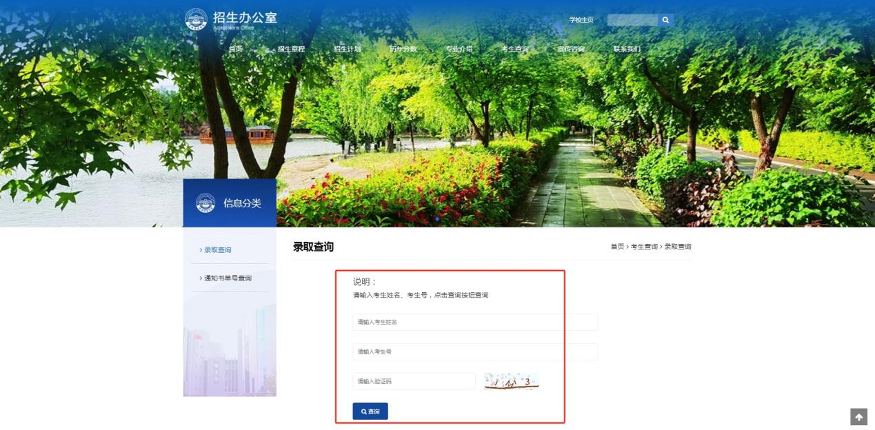 第二步,在“招生信息网”中,点击“考生查询”,进入“录取查询”系统。