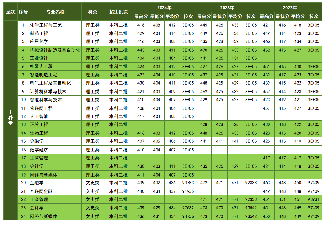 本科专业近三年河南省录取分数线