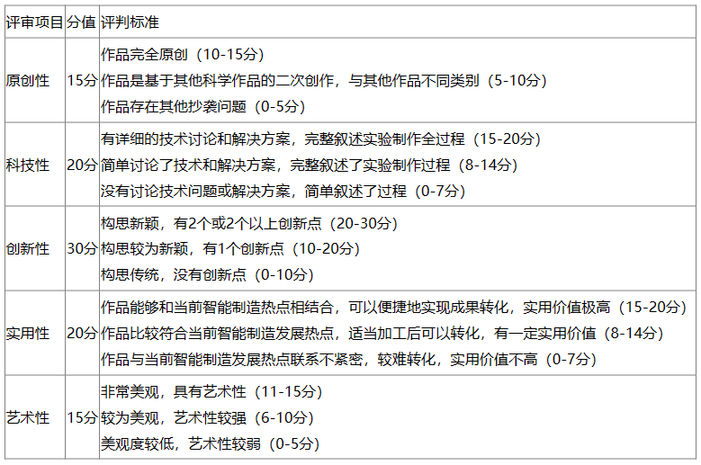 参赛作品的创作要以提高广大师生智能制造认知科学素质为目标,围绕智能制造的特征和模式,须具备科学性、普及性和实用性,同时还应具备一定的趣味性和通俗性。